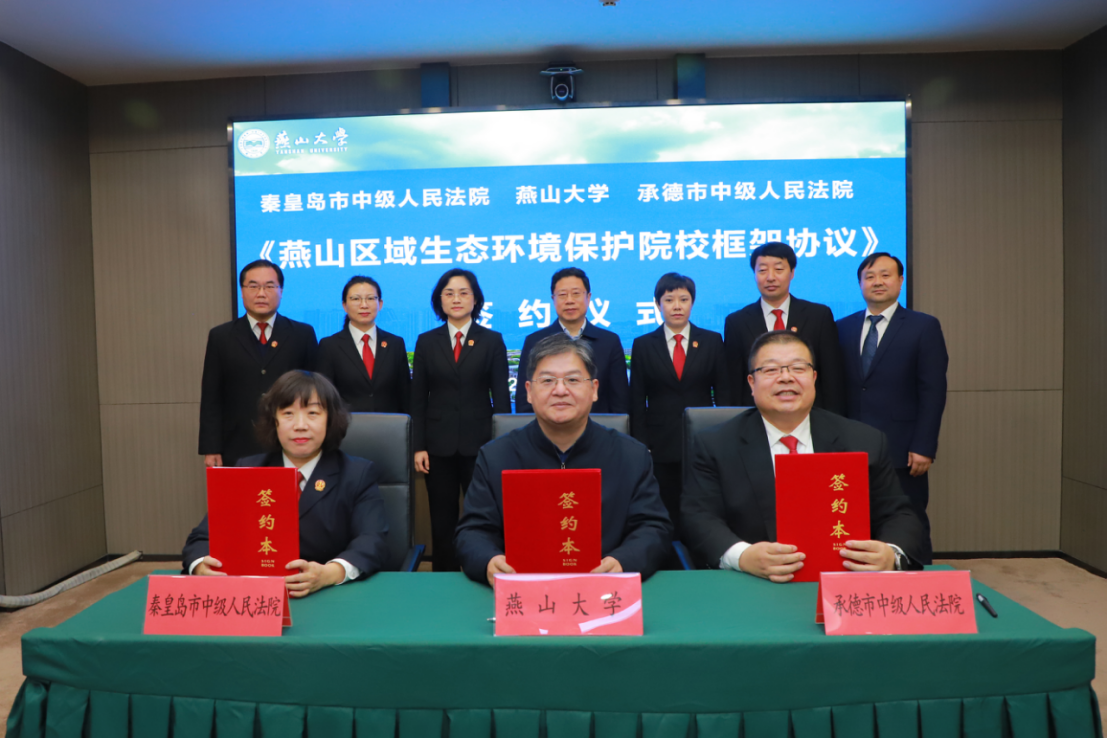 【新闻中心讯】12月8日上午,《燕山区域生态环境保护合作框架协议》签约仪式在燕山大学世纪楼2103会议室举行。燕山大学党委书记赵险峰,燕山大学党委常委、副校长汪殿龙,承德市中级人民法院党组书记、代院长蔺静,秦皇岛市中级人民法院党组书记、院长张莉,承德市中级人民法院党组成员、副院长丁一,秦皇岛市中级人民法院党组成员、副院长杨超出席签约仪式。仪式由燕山大学文法学院(公共管理学院)院长丛鑫主持。