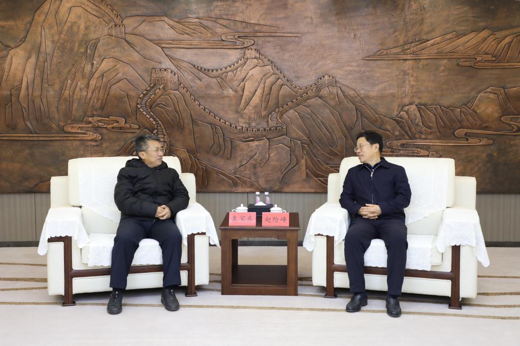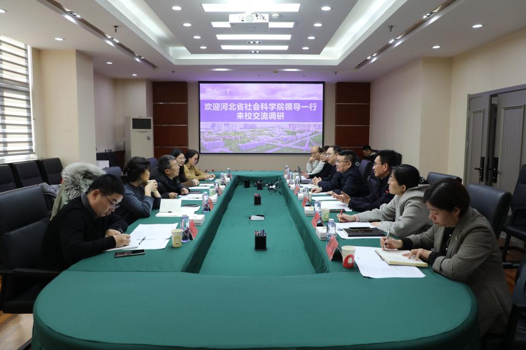 【新闻中心讯】12月26日,河北省社会科学院党组成员兼副院长、省委讲师团副主任袁宝东一行来我校调研交流。燕山大学党委书记赵险峰,党委常委、副校长陈国强,党委常委、纪委书记孙录印在世纪楼2106会议室会见了袁宝东一行。随后,双方在世纪楼2101会议室进行调研座谈。