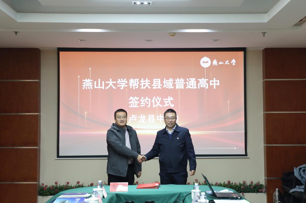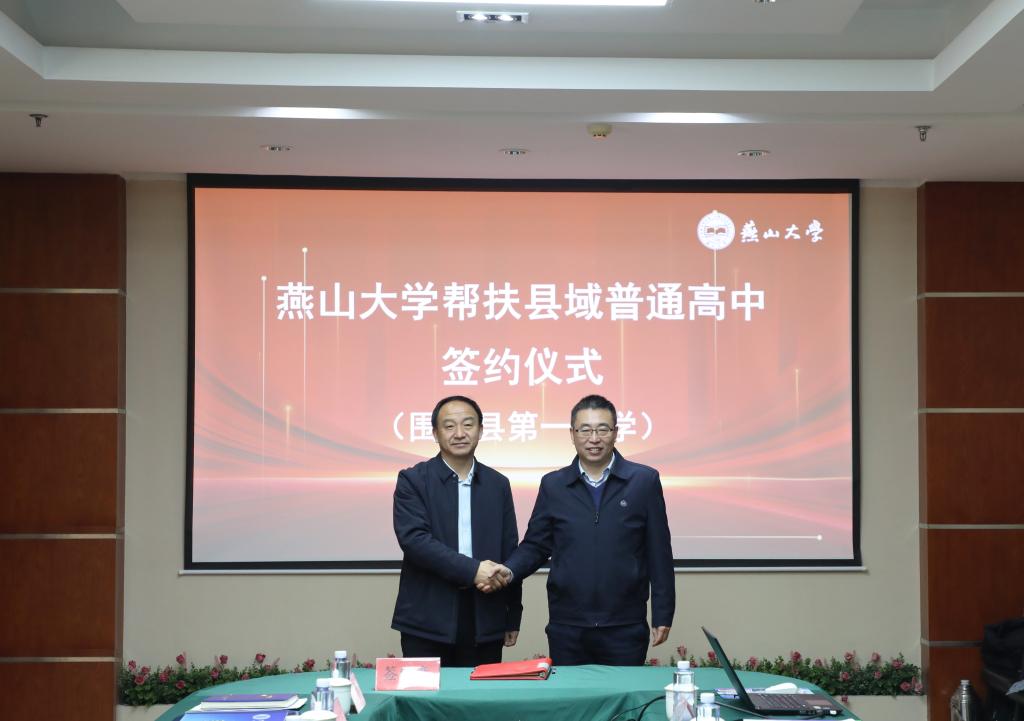 【新闻中心讯】为贯彻落实教育部《“十四五”县域普通高中发展提升行动计划》有关部署要求,加强县域高中的建设,带动和提升县域高中的整体办学水平,学校根据《河北省教育厅关于做好省内高等学校帮扶县域普通高中工作的通知》,于12月19日与承德市围场县第一中学、秦皇岛市抚宁区第一中学、卢龙县中学分别签订了县域高中帮扶协议。