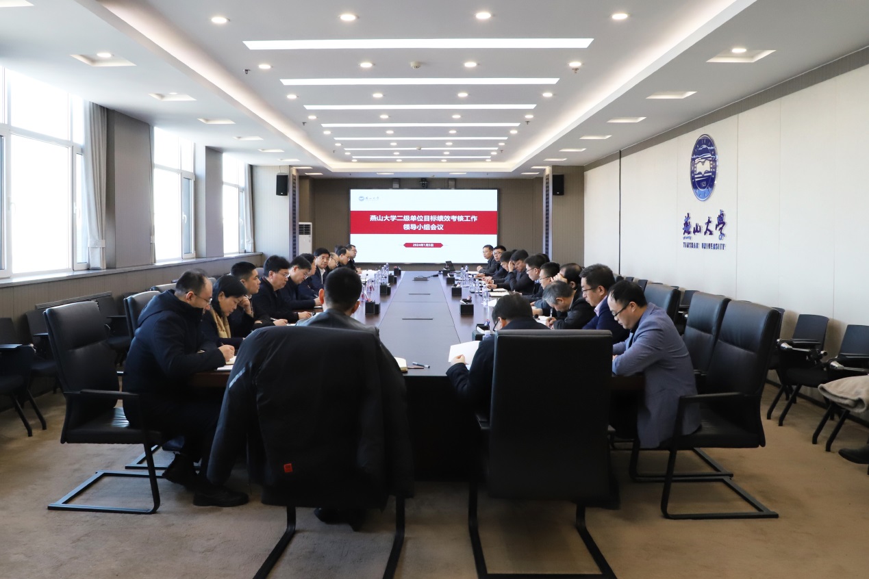 【新闻中心讯】1月5日上午,燕山大学二级单位目标绩效考核工作领导小组会议在世纪楼2103会议室召开。校党委书记、考核工作领导小组组长赵险峰,党委副书记、校长、考核工作领导小组组长赵丁选出席会议并讲话。考核工作领导小组成员参加会议。会议由党委常委、副校长、考核工作领导小组副组长汪殿龙主持。