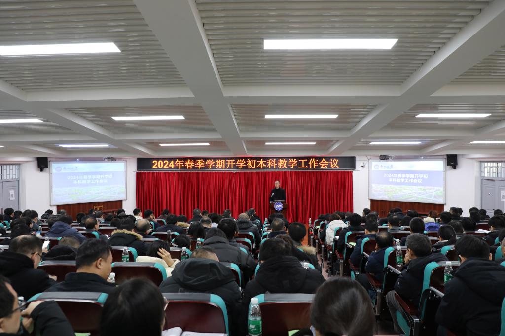 【新闻中心讯】2月25日,2024年春季学期开学初本科教学工作会议在东校区第三教学楼213召开。党委常委、副校长任家东,各学院党委书记、院长、教学副院长、本科教学科级秘书、系室主任(含职业指导教研室、心理健康教育教研室、军事训练教研室)、双创基地负责人,教务处(教师培训中心)、创新创业教育与指导中心、工程训练中心科级及以上干部等近180人参加了会议。会议由教务处副处长赵春梅主持。