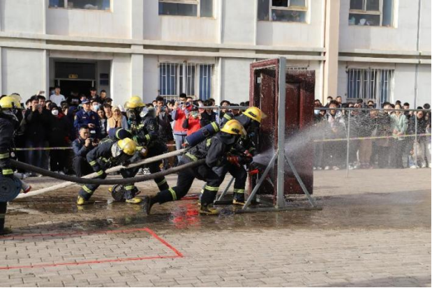 此次演练前安全工作处、学生工作处、后勤服务中心及相关学院进行了充分论证准备和精心安排部署,演练过程中坚持实战导向,模拟学生公寓失火、有人员被困的火情,设置紧急疏散逃生、微型消防站初起火灾扑救、消防救援人员内攻灭火、高空营救被困人员等演练科目。
