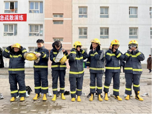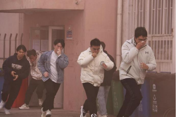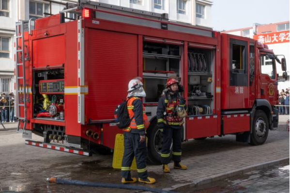 汪殿龙宣布“燕山大学2024年春季学期灭火救援和疏散演练”开始。“火情”发生后,公寓管理人员立即组织学生有序疏散,同时启动学生公寓消防应急处置预案,在一分钟内形成第一灭火战斗力量使用灭火器积极扑救初起火,学校微型消防站接到火警后,就近的微型消防站队员在三分钟内到达起火点,使用消火栓继续灭火并在失火点附近进行搜救,寻找被困人员。因室内烟雾较大且火势猛烈,灭火救援失败,灭火队员被迫撤离至安全区域接应辖区消防救援中队。辖区消防中队接警后,2部水罐消防车、1部登高车到达现场,迅速展开火情侦查、人员搜救,制定灭火救援方案,内攻灭火、外部控火、高空救援等处置工作有序开展。经过20分钟的紧张战斗,学生们全部安全地撤出宿舍楼,“大火”也被彻底扑灭。