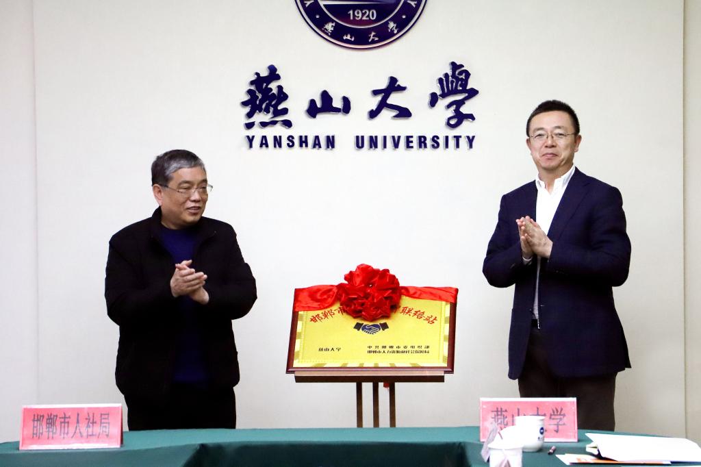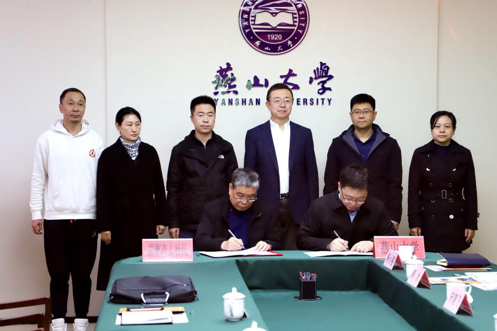 在任家东、韩国强等领导的共同见证下,宋晓飞和李建民代表校地双方签署了《燕山大学与邯郸市签署共建招才引智联络站合作协议》。