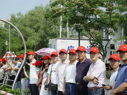 【新闻中心讯】2008年7月12日下午,在一碧如洗的晴空下,火炬手、交警、志愿者、观众共数千人顶着炎炎的烈日聚集在一起。燕山大学国家大学科技园70名各企业负责人、优秀工作者,也在燕山大学国家大学科技园主任刘文远,燕大产业集团党委书记赵静一地率领下,参加了这次秦皇岛奥运火炬传递第一次全市演习。(编辑 艾冬梅)