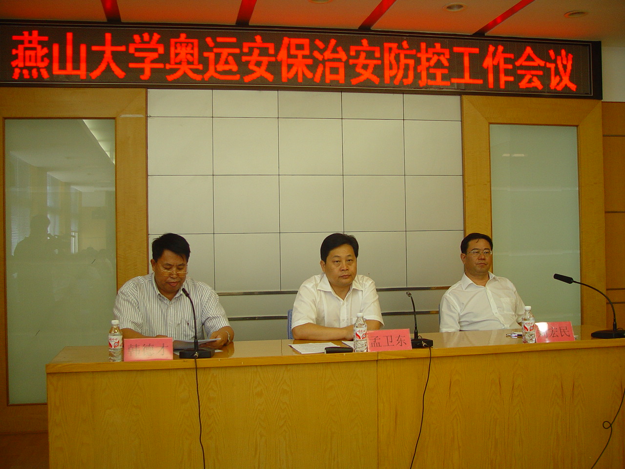 8月2日下午,燕山大学奥运安保治安防控工作会议在世纪楼第一会议室召开。校领导孟卫东、刘宏民、盛婉玉、杨育林、刘彬、潘洪江、张福成、孔令富、韩德才出席了会议,全体中层干部及部分科级干部参加了会议。