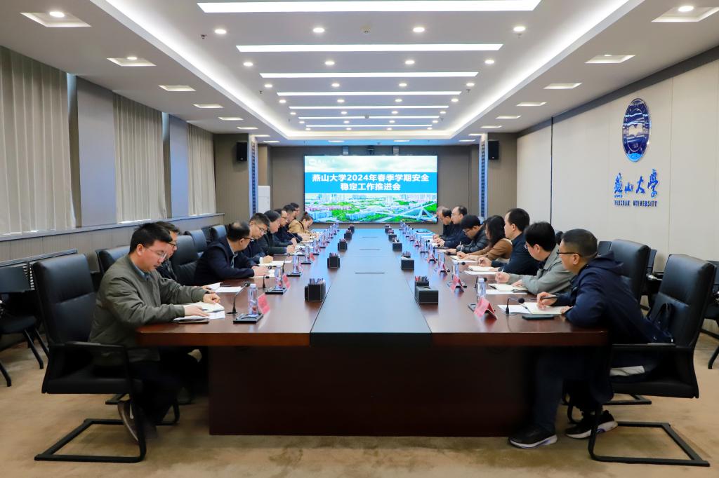 【新闻中心讯】为进一步压实安全工作主体责任,做好春季学期校园安全稳定工作,4月11日上午,我校在世纪楼2103会议室召开燕山大学2024年春季学期安全稳定工作推进会。校党委常委、副校长汪殿龙主持会议并做讲话,相关部门负责人参加了会议。