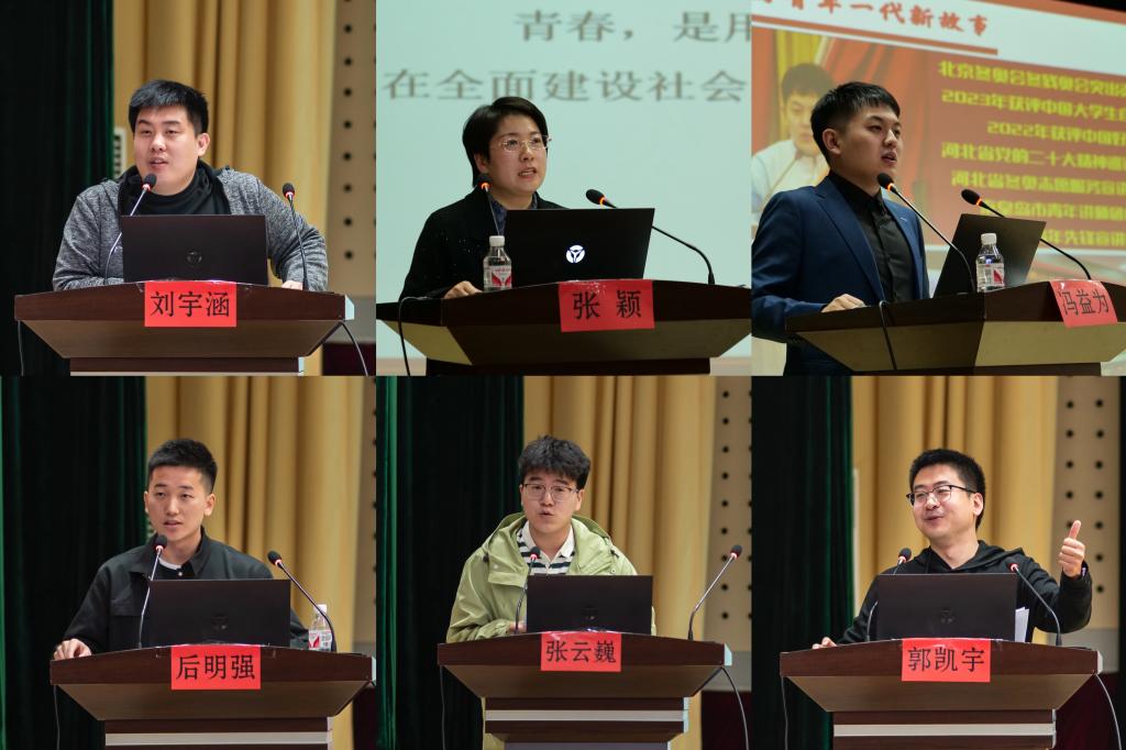 本次“新青年”主题团课分别邀请了信息科学与工程学院教师、视翼科技创始人&CEO、河北省青年讲师团杰出讲师刘宇涵,电气工程学院副处级辅导员、秦皇岛市青年讲师团成员张颖;经济管理学院博士研究生、河北省党的二十大精神巡讲团成员、秦皇岛市青年讲师团成员冯益为以及校青年先锋宣讲团成员张云巍、后明强、郭凯宇等六位师生担任主讲。