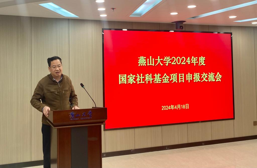 【新闻中心讯】4月18日上午,燕山大学2024年度国家社科基金项目申报交流会在世纪楼1816会议室召开。各文科学院相关负责同志、2024年国家社科基金项目拟申报人员和社会科学处全体成员共60余人参加了会议。会议邀请来自中共中央党校、中国社会科学院、吉林大学、中国海洋大学的5位专家为我校教师进行申报交流指导。