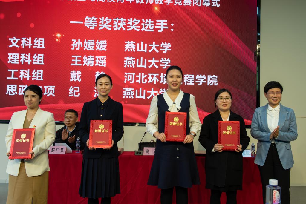 经过激烈角逐,燕山大学的孙媛媛、王婧瑶、纪淳和河北环境工程学院的戴静4位选手分别获得文科组、理科组、思政专项、工科组一等奖,他们将于6月代表秦皇岛市参加河北省青年教师教学竞赛。本次竞赛还设二等奖、三等奖各4名。此外,燕山大学、东北大学秦皇岛分校、科技师范学院等7所院校获得优秀组织奖。