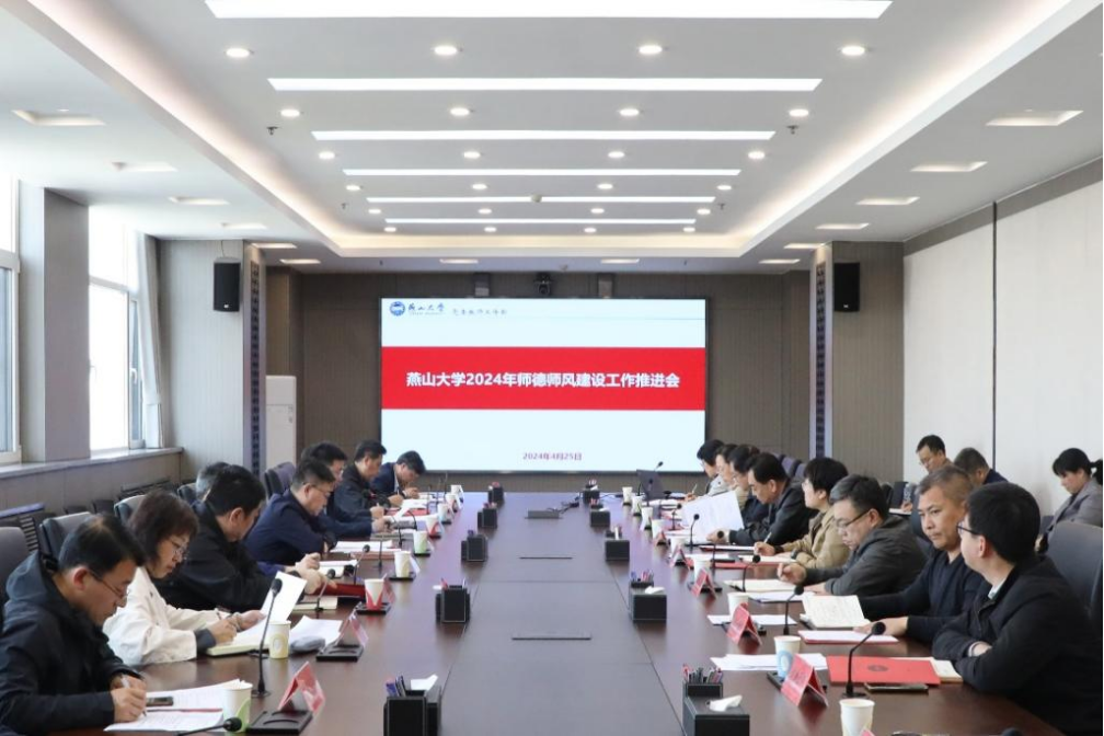 【新闻中心讯】4月25日下午,燕山大学2024年师德师风建设工作推进会在世纪楼2103会议室召开,党委常委、副校长陈国强出席并主持会议,党委教师工作部、各基层党委和高等教育发展研究中心主要负责人参加了会议。