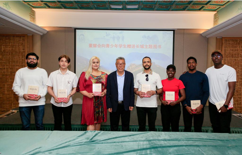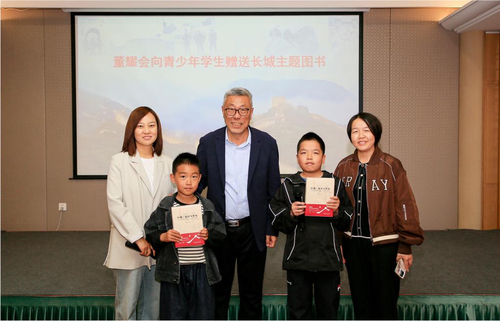 中国长城学会副会长、燕山大学中国长城文化研究与传播中心主任、河北地质大学长城研究院院长董耀会发表了讲话。他谈到,很高兴在徒步考察明长城出发40周年纪念日这一天回到家乡,见到很多的老朋友。他和大家分享了40年前从山海关出发时的故事,讲述了自己的文学情结,回忆了长城同道间交往的趣事,以及大家共同为长城保护与传播事业作出的贡献。他表示,自己人生的第一个30年是自我成长的阶段,第二个30年是为长城研究和保护利用事业奋斗的阶段,第三个30年是陪年轻人一起成长奋斗的阶段。希望未来能够有更多的高校、更多的年轻人加入长城研究的领域,为长城保护与研究事业作出更大的贡献。之后,董耀会向小学生、大学生、来华留学生代表赠送了长城主题图书。