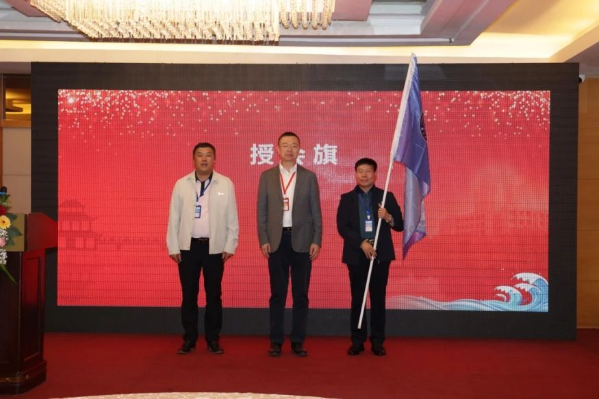 在就职仪式上,任家东向大连校友会授予会旗,母校代表分别为新任会长、名誉会长、副会长、理事、秘书长、副秘书长颁发聘书。