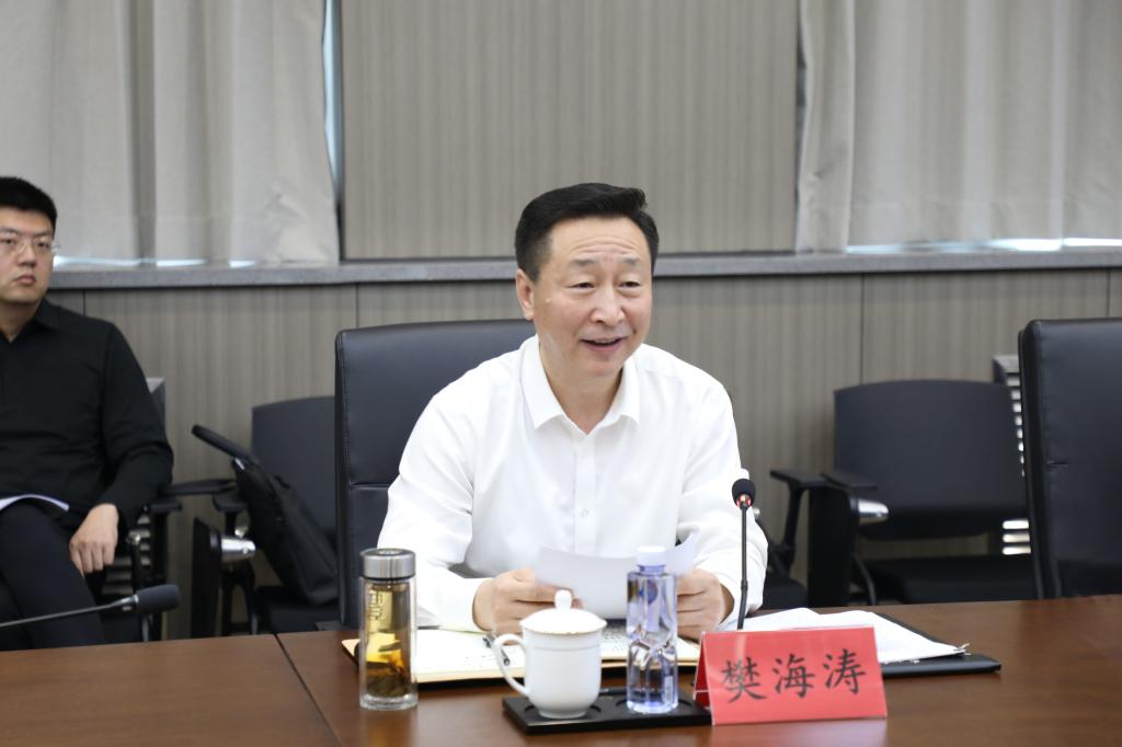 樊海涛对燕山大学取得的办学成绩给予充分肯定,并详细介绍了开发区的创新优势、营商环境和产业底蕴。他表示双方地缘优势独特、合作基础扎实、合作前景广阔,目前开发区锚定“四地四区”发展新定位,五大主导产业发展与学校机械、材料等传统优势学科高度契合。开发区将充分发挥自身优势,为燕山大学的事业发展提供全力支持和优质服务,也衷心希望燕山大学依托雄厚的科研力量、优质的教育资源和广泛的社会影响力,为开发区高质量发展提供强有力的支撑。