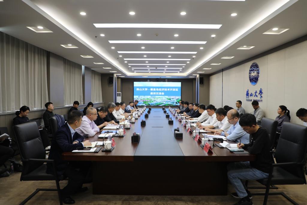 赵险峰对樊海涛一行表示热烈欢迎,对开发区长期以来给予学校的支持与帮助表示感谢。他表示秦皇岛经济技术开发区是全国首批、河北首家国家级经济技术开发区,建区40年来已经发展成为秦皇岛市经济发展增长极、现代产业主阵地、改革开放排头兵。多年以来,燕山大学与开发区情谊深厚、往来密切,双方自2021年共建国家大学科技园以来,在企业孵化、成果转化、产教融合、人才培养等方面开展了紧密有效的合作,未来将进一步合作探索科技创新与经济发展的新模式,共同推进科技成果转化和地方经济的高质量发展。