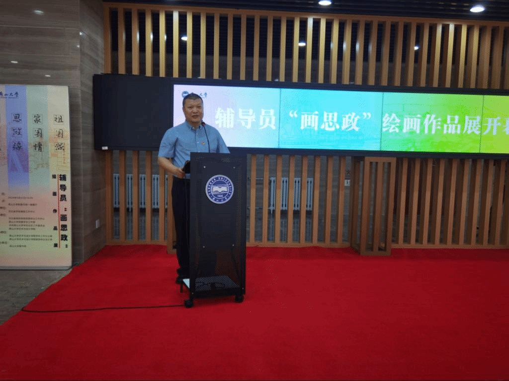 赵险峰宣布辅导员“画思政”绘画作品展开幕