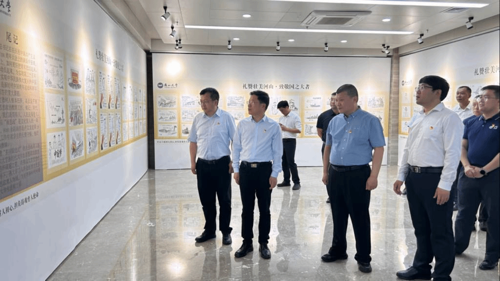 在热烈的掌声中,赵险峰宣布辅导员“画思政”绘画作品展开幕。开幕式后,领导嘉宾和师生代表们共同参观了作品展。