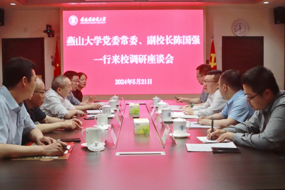 在景德镇陶瓷大学,陈国强一行参观了湘湖校区陶瓷展览馆,并和景德镇陶瓷大学党委常委、副校长黄勇等人围绕人才引进、资产管理、招生、就业等方面工作开展座谈。他表示,两校在高层次人才培养、艺术类学科建设等方面合作基础深厚,希望未来双方搭建科研合作和人员交流合作平台,并在招生和就业角度加强合作,提升双方科研创新和服务区域经济社会发展能力。招生就业处副处长朱文华、艺术与设计学院副院长王年文分别就学校招生就业工作、艺术类学科建设发展情况同与会人员进行了介绍和交流。