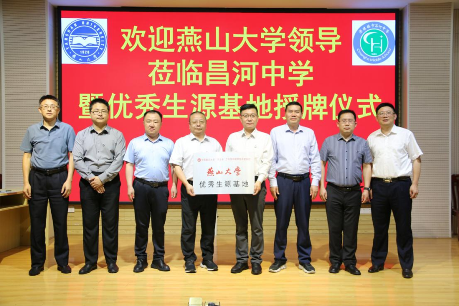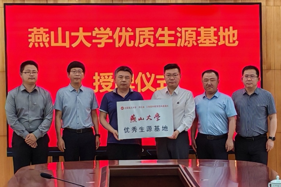走访高中期间,陈国强一行先后走访了江西省景德镇第一中学和景德镇市昌河中学,与两所中学的学校领导、骨干教师进行了座谈交流,并向中学授予“优秀生源基地”牌匾。在座谈会上,陈国强首先介绍了学校的历史沿革、人才培养和近几年在江西省的招生录取情况,同时,交流了近年被我校录取的景德镇一中和昌河中学学生的学习近况。他表示,与景德镇第一中学和景德镇市昌河中学分别共建优秀生源基地,可以有效促进高中向高校输送优质人才,优化人才选拔机制,优秀生源基地平台的持续建设和稳定发展将吸引越来越多的江西省优秀学子来燕山大学学习、生活。