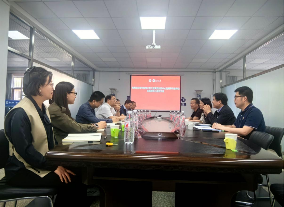 【新闻中心讯】5月24日上午,华中科技大学工程实践创新中心直属党支部书记陈小丽、主任助理吴志超等一行4人到工程训练中心调研交流。工程训练中心党委书记、主任侯培国和相关工作人员参加交流活动。