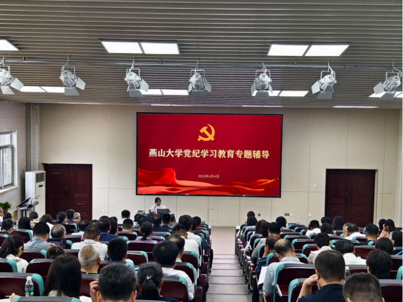 【新闻中心讯】6月4日,燕山大学举办党纪学习教育专题辅导报告。中央党校(国家行政学院)党的建设教研部马丽教授作题为《深入学习〈中国共产党纪律处分条例〉》的专题辅导报告。党委常委、副校长任家东主持报告会。