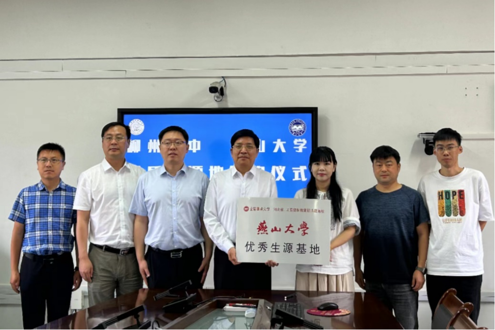 走访高中期间,赵丁选与柳州高级中学校长卢涛及骨干教师进行了座谈交流,并向柳州高中授予了“优秀生源基地”牌匾,参观了柳州高级中学科技展览馆。在授牌仪式上,赵丁选介绍了学校的历史沿革、人才培养和科学研究等情况。他表示,与柳州高中共建优秀生源基地,是促进高校和中学人才交流、人才输送,优化选拔机制的重要举措。本次优秀生源基地签约授牌仪式的举行,对于推进两校协同育人、共同建设创新人才培养体系意义重大。随后,宋晓飞介绍了燕山大学近年来在广西壮族自治区和柳州高级中学的招生情况。