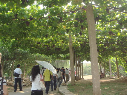 【新闻中心讯】9月21日,校工会组织青年教工赴卢龙县鲍子沟生态旅游度假村进行金秋联谊活动。此次联谊以2008年新引进的青年教工为主体,大家参观了当地的葡萄园,并进行了登山活动。在山顶草原,青年教工们通过各种游戏增进了认识和了解。下午,大家又乘车来到位于昌黎县的朗格斯酒庄进行了参观。该酒庄由奥地利首富格诺特·朗格斯·施华洛奇于1999年独资兴建。大家在向导的带领下参观了酒庄意大利式的建筑群,并了解了葡萄酒酿造的整个工艺设备流程,参观了葡萄酒窖。