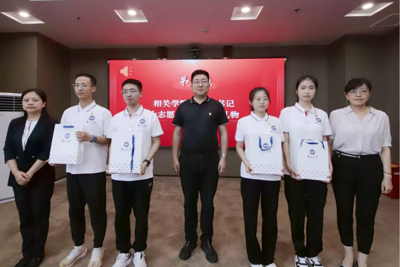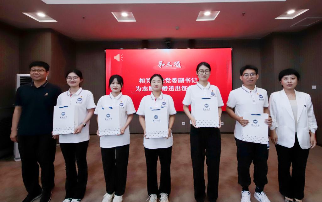 相关学院领导为研支团志愿者赠送出征礼物,希望全体成员在学校的关心支持下全力做好支教工作。
