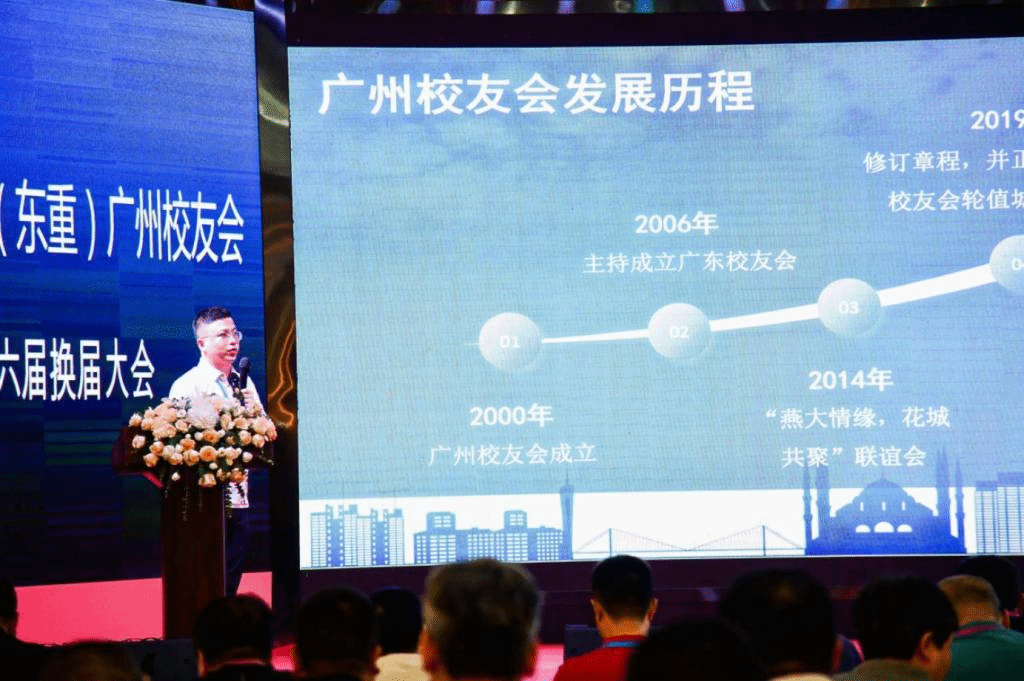 广州校友会秘书长代高明作第五届理事会工作汇报,他感谢大家千里迢迢来见证广州校友会换届,详细介绍了广州校友会自2000年成立以来的发展历程。以方国红为代表的创始校友们筚路蓝缕、无私奉献、薪火相传,激励着后来者奋发前行,才成就今天的局面。