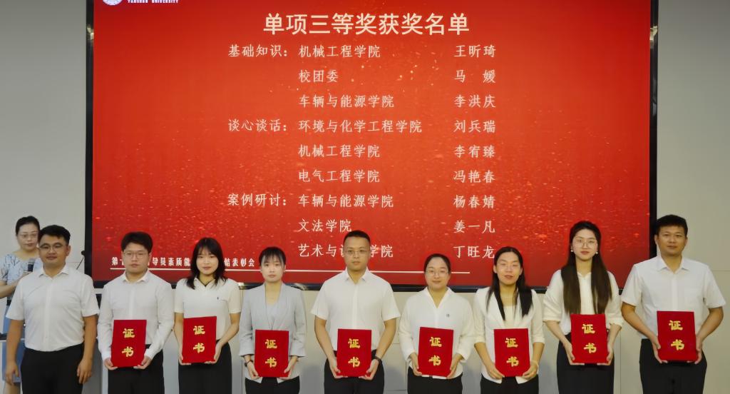 【新闻中心讯】6月27日上午,燕山大学辅导员素质能力大赛总结表彰会在东区四教108报告厅举行。党委学生工作部及各学院主管学团工作领导、全体专职辅导员参加了会议。会议由党委学生工作部副部长王银思主持。