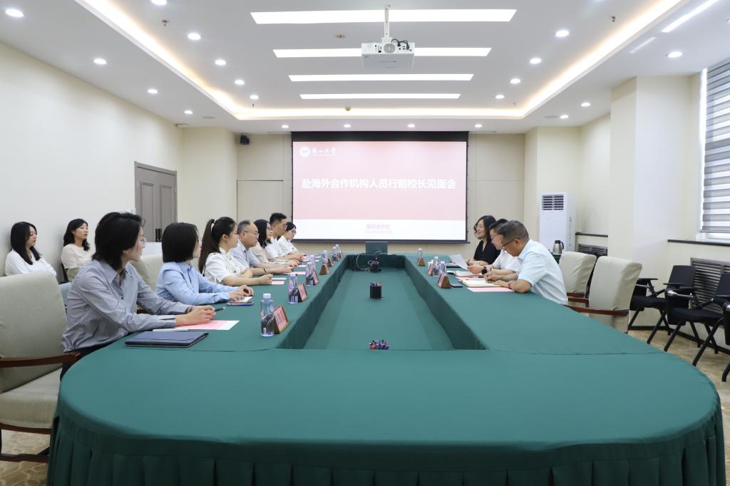 【新闻中心讯】6月28日上午,副校长陈国强在世纪楼2102室会见了即将赴任博茨瓦纳国际科技大学孔子学院和燕山大学托列多学院的我校工作团队。博茨瓦纳国际科技大学孔子学院中方院长高迎泽、国际中文教师高颖娜、国际中文教育志愿者张春辉、张陈晨、郭文睿,燕山大学托列多学院实习教师于佳心、杨佳玥参加见面会,国际合作处相关负责人陪同参加。