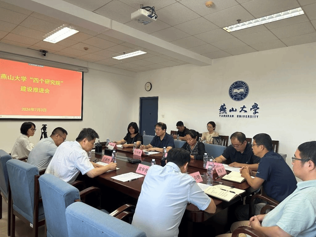 【新闻中心讯】7月3日上午,燕山大学四个校设研究院建设推进会在世纪楼1010会议室召开,副校长王德松出席会议,科学技术研究院院长严书亭、副院长周向锋,人力资源处处长黄华贵、研究生院副院长李兴国、计划财务处副处长高新宇、实验室与资产管理处副处长曲文静,和人工智能与机器人研究院、海洋科学与工程研究院、康养产业技术研究院、双碳科学与技术研究院等相关单位负责人以及研究院教师代表参加会议。会议由严书亭主持。