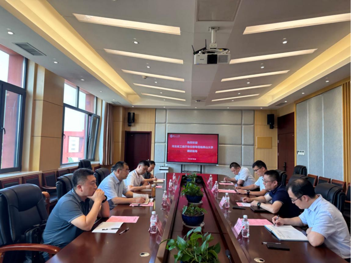 【新闻中心讯】7月3日下午,河北省工业和信息化厅原材料处处长石起伟、副处长王晓峰,高新技术处副处长石铁铸,科技处主任科员王高崇来到燕山大学,就我校新材料研究、高端装备制造、促进区域经济和行业发展等工作进行调研。燕山大学科学技术研究院院长严书亭、副院长许岩,材料科学与工程学院副院长赵元春,高压科学中心历帅参加调研座谈。座谈会由严书亭主持。