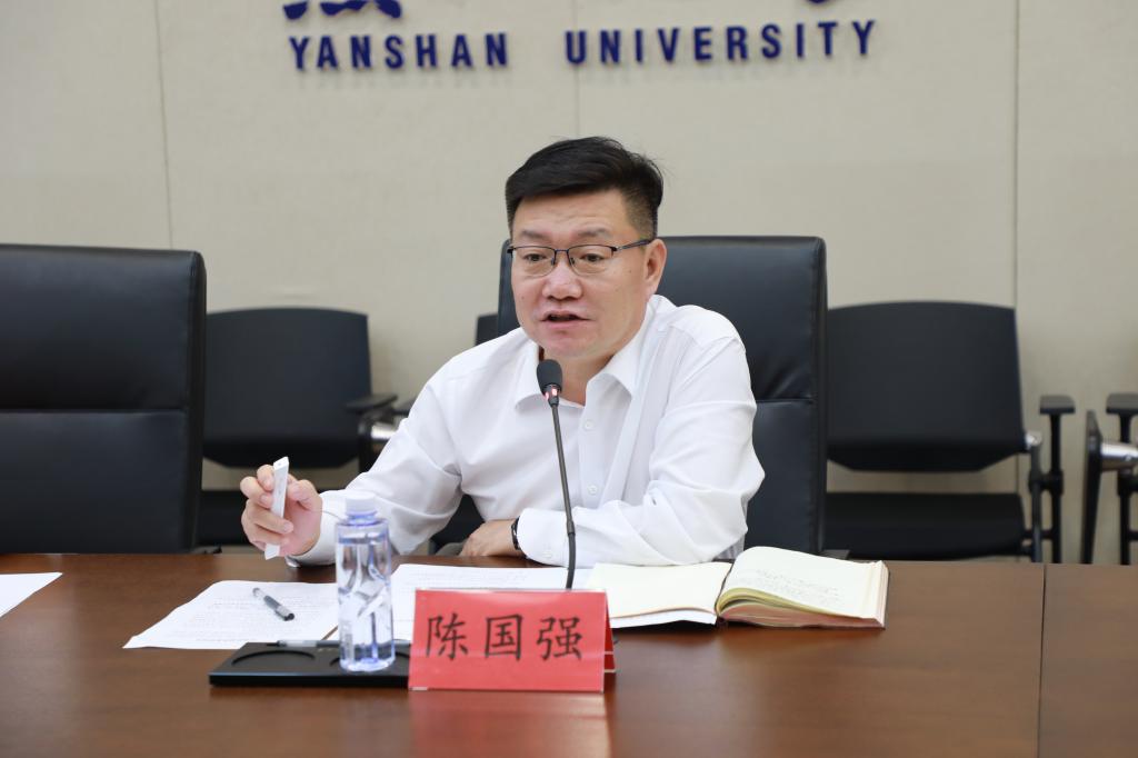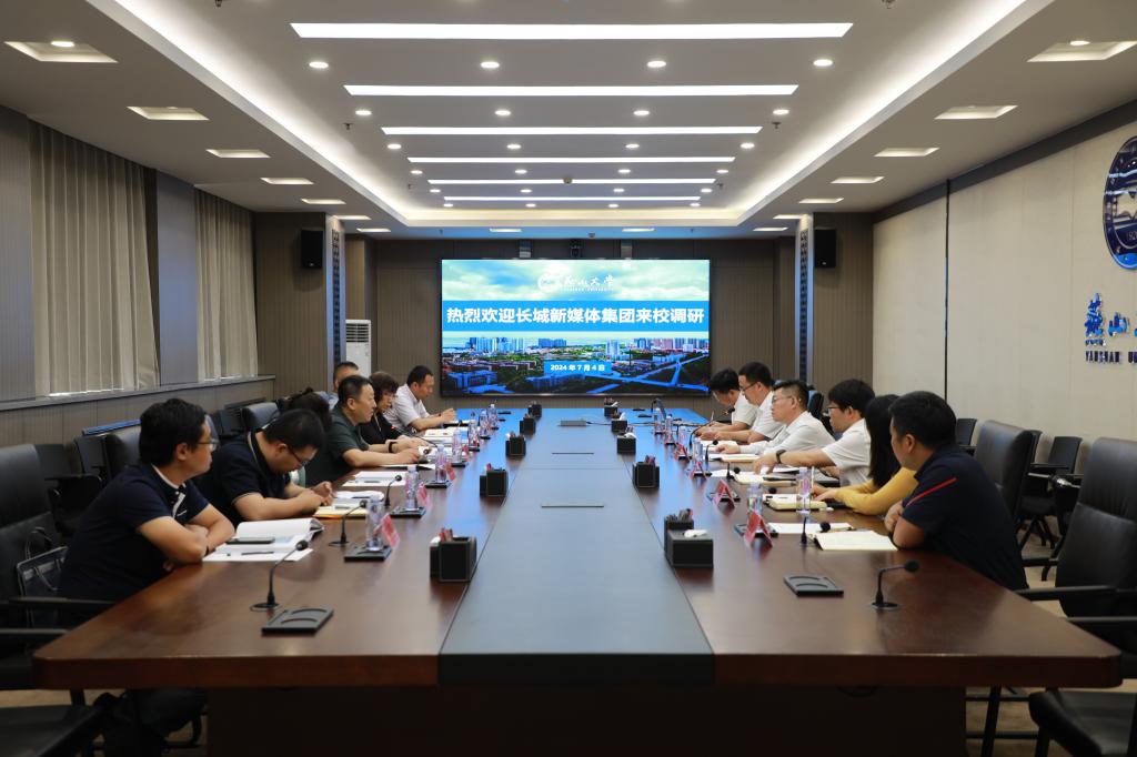 【新闻中心讯】7月4日下午,长城新媒体集团党委委员、监事会主席张东力一行来校就高校融媒体中心建设情况、高校网络思想政治教育、产学研合作探索与实践等内容和高校数字化、人工智能课程建设等内容调研,燕山大学党委常委、副校长陈国强带领学生工作处、党委宣传部、教务处、科技产业促进中心等部门负责人在世纪楼2103会议室与客人一行进行座谈交流,座谈会由党委宣传部逯宝峰主持。