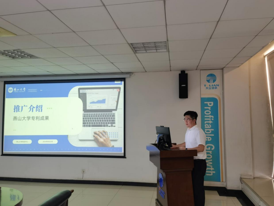 启动仪式后,在秦皇岛天业通联重工科技有限公司三楼会议室,科技产业促进中心、机械工程学院、车辆与能源学院教授、专家分别就“燕山大学专利成果的推广介绍”、“浅谈怎样形成专利申请”、“重载车辆智能底盘分布式电驱动技术”及“复杂机电液联合仿真技术与集成优化”进行了现场路演及座谈交流。成果路演会由燕山大学科技产业促进中心副主任王鹏主持。