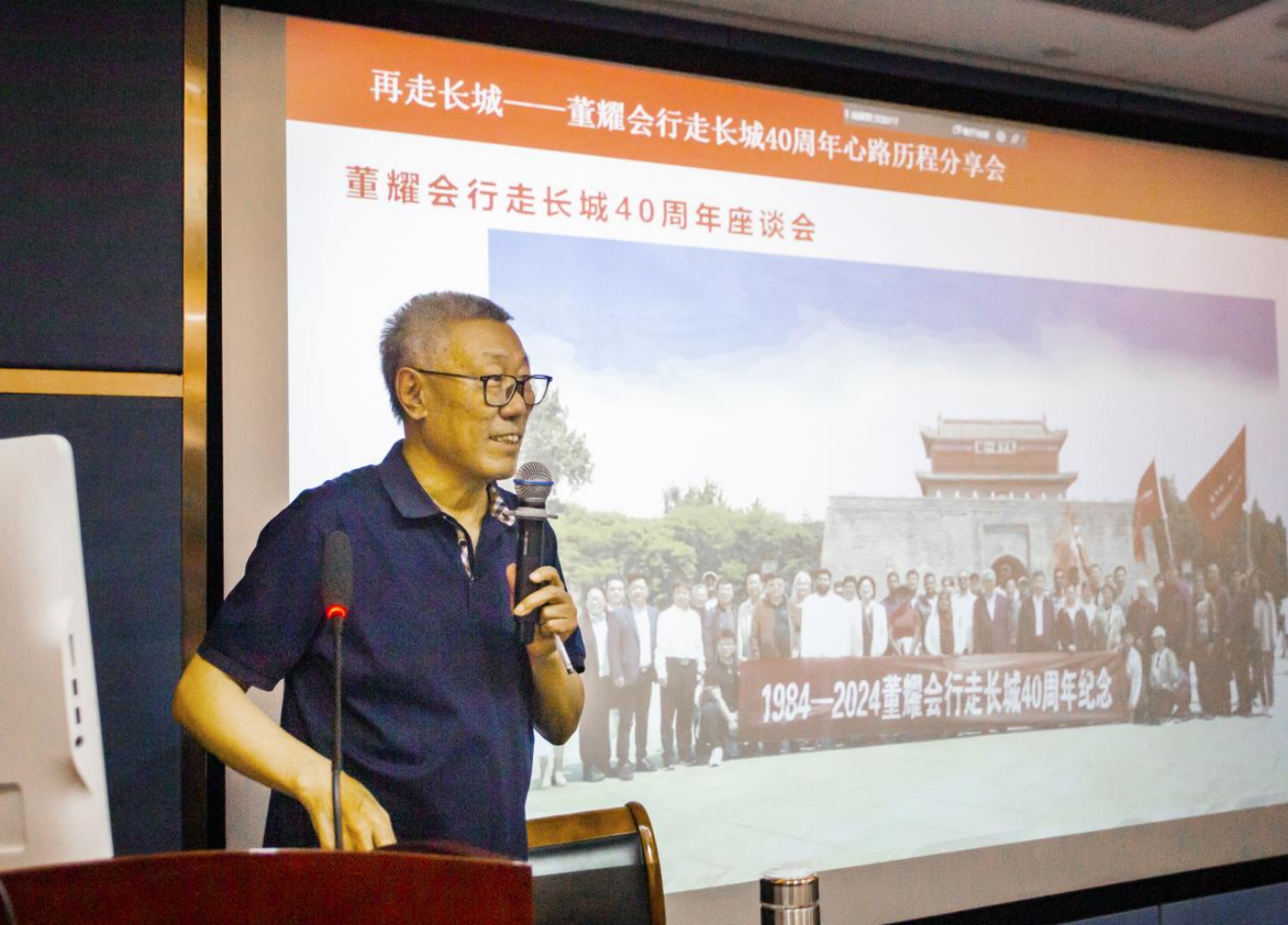 分享会伊始,董耀会介绍了1984年他同伙伴从山海关出发徒步考察明长城的经历,讲述了其40年如一日为长城保护与研究事业奔走的初心。接下来,董耀会通过数十张他在今年6月—8月历时66天对明长城全线重要点段再次进行系统考察的现场照片和40年前考察长城的老照片,为师生们讲述了40年间长城沿线的变迁和众多为长城保护和研究事业作出贡献的长城人的故事。最后,董耀会呼吁现场的师生能加入到长城保护的行列中来,共同弘扬传承长城精神,守护好我们中华民族灿烂的文化瑰宝。