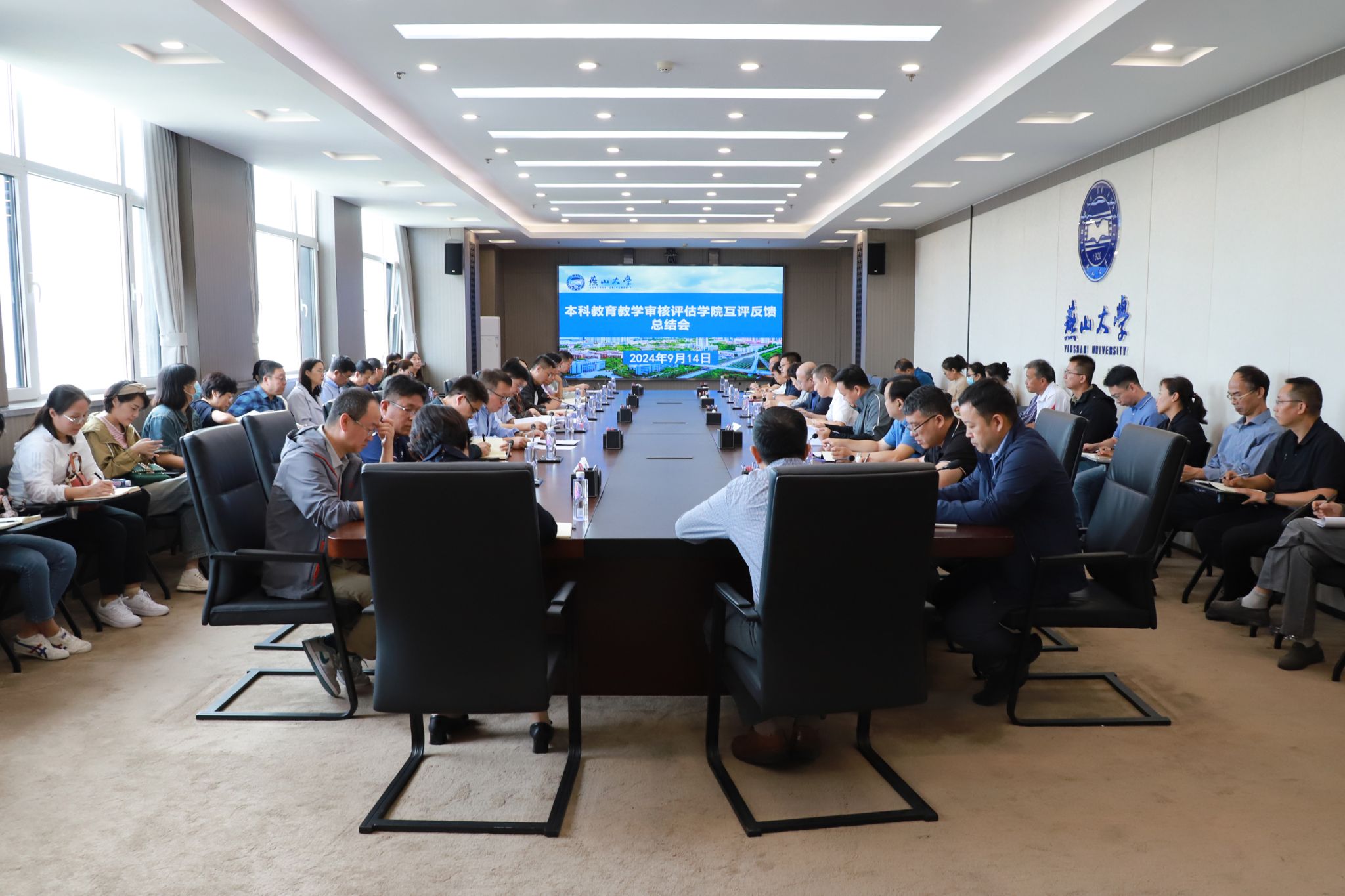 【新闻中心讯】9月14日上午,按照学校本科教育教学审核评估学院互评活动安排,学校在世纪楼2103会议室组织召开了本科教育教学审核评估学院互评反馈总结会。党委常委、副校长(学校审核评估工作办公室主任)汪殿龙、校内审核评估专家、各教学单位分管本科教学工作副院长及教学秘书、审核评估工作办公室工作人员等50余人参加了会议。会议由审核评估工作办公室组织,教务处副处长赵春梅主持。