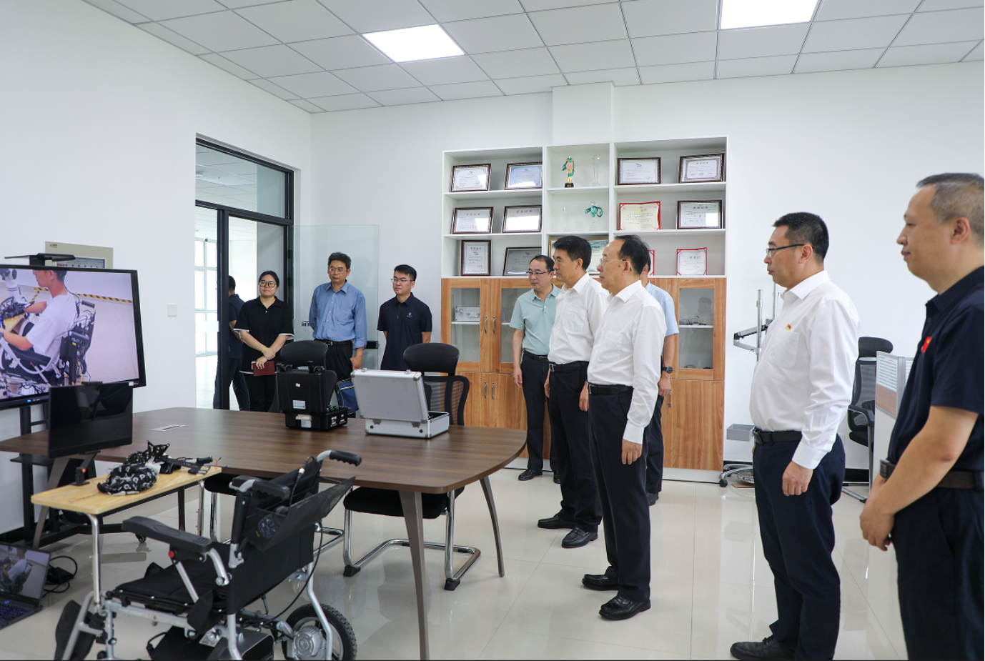 闫五一一行首先参观燕山大学康养产业技术研究院,听取了各项目研究团队近期取得的研究成果汇报。