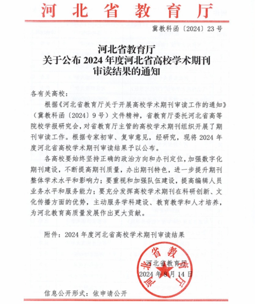 2024年度河北省高校乐竞体育在线期刊审读结果