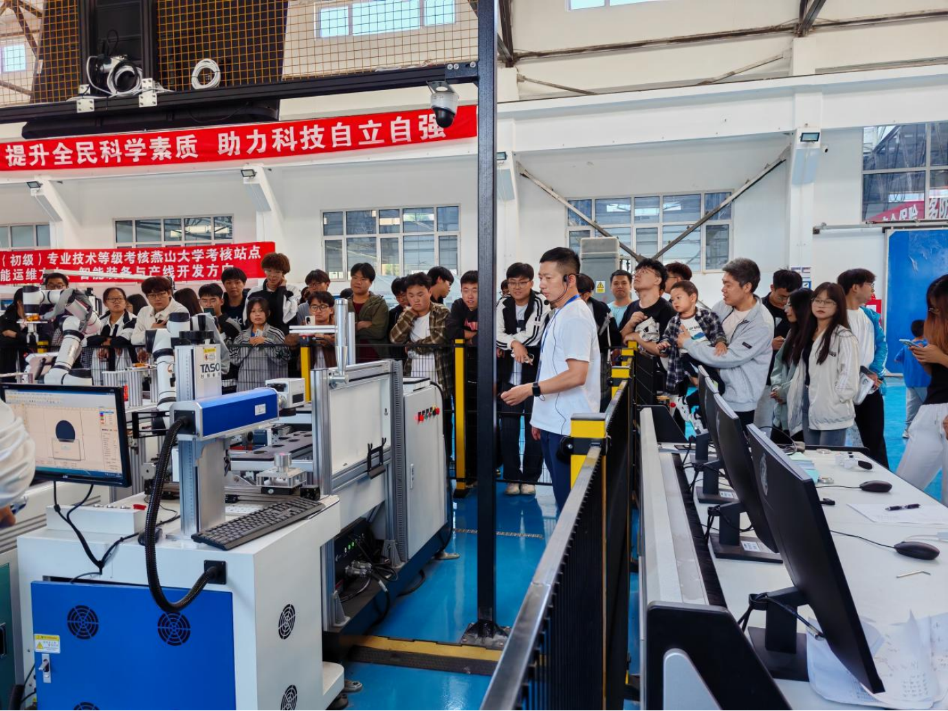 在参观活动环节,参观者在科普志愿者的引导下有序地进入智能制造实训基地、燕工坊创新实践基地、电子实验中心实训基地进行参观,大家参观了各种先进的智能设备以及智能生产线,体验了3D打印技术、VR虚拟场景,观看了科技创新社团的作品等,真实体验了一次智能制造科技之旅。