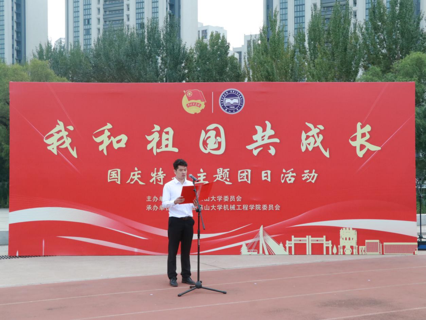 【新闻中心讯】为庆祝中华人民共和国成立75周年,深入贯彻党的二十大和二十届三中全会精神,进一步引导广大青年坚定理想信念,厚植爱国情怀,9月28日上午,由燕山大学团委主办,机械工程学院团委承办的“我和祖国共成长”国庆特别主题团日活动在第一体育场举办,燕山大学全体专职团干部、学生组织代表参加活动。
