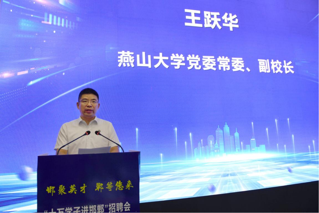 【新闻中心讯】9月26日,由中共邯郸市委组织部、邯郸市人力资源和社会保障局和燕山大学联合主办的“十万学子进邯郸”燕山大学专场招聘会暨招才引智联络站回访活动在燕山大学东校区大学生活动中心成功举办。燕山大学党委常委、副校长王跃华,邯郸市人力资源和社会保障局党组书记、局长马聚军,邯郸市人才交流开发中心、冀南新区、曲周县、鸡泽县人社部门及燕山大学招生就业处等相关负责同志出席活动。活动由招生就业处副处长陈树冬主持。