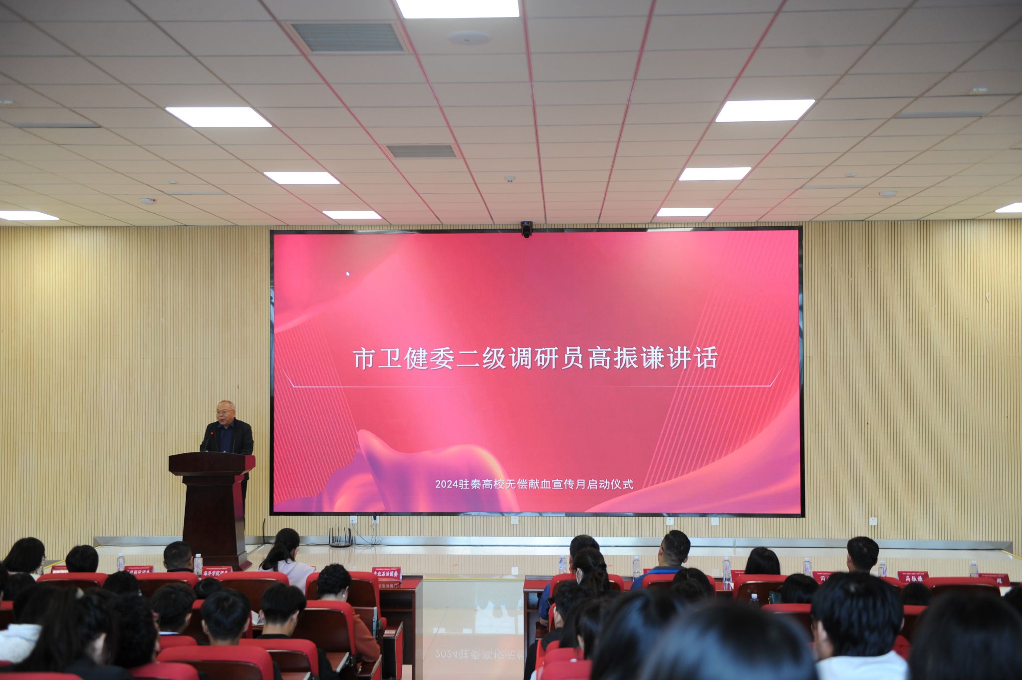 市卫健委二级调研员高振谦向长期以来高度重视并长期支持无偿献血工作的驻秦各高校表示感谢,呼吁更多青年学子加入无偿献血队伍。