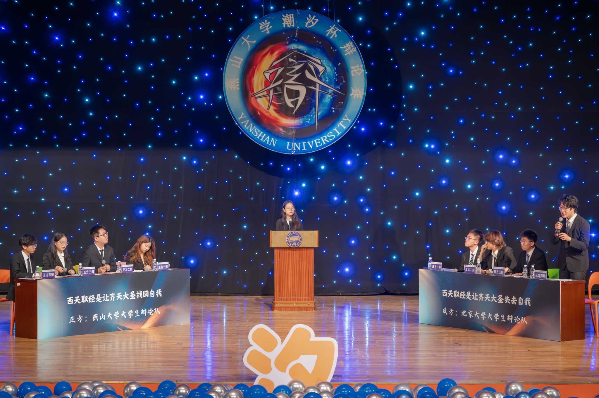 随后,北京大学学生辩论协会应邀与我校学生辩论队开展友谊赛。双方就“西天取经是让齐天大圣找回自我还是失去自我”这一经典话题展开了激烈辩论。我校辩论队认为孙悟空从石猴到齐天大圣是本我到自我的第一次构建,而西天取经是小我融入大我的过程,最终成为斗战圣佛是对自我的再次构建。北京大学学生辩论协会则通过角色扮演的方式,由一、二、三辩分别扮演唐僧、牛魔王和孙悟空,在佛家“无我”为放下自我的基础上进行立论。双方聚焦孙悟空的成长不断升华辩题内涵,言辞敏捷、妙语连珠,为观众带来了别开生面的体验。