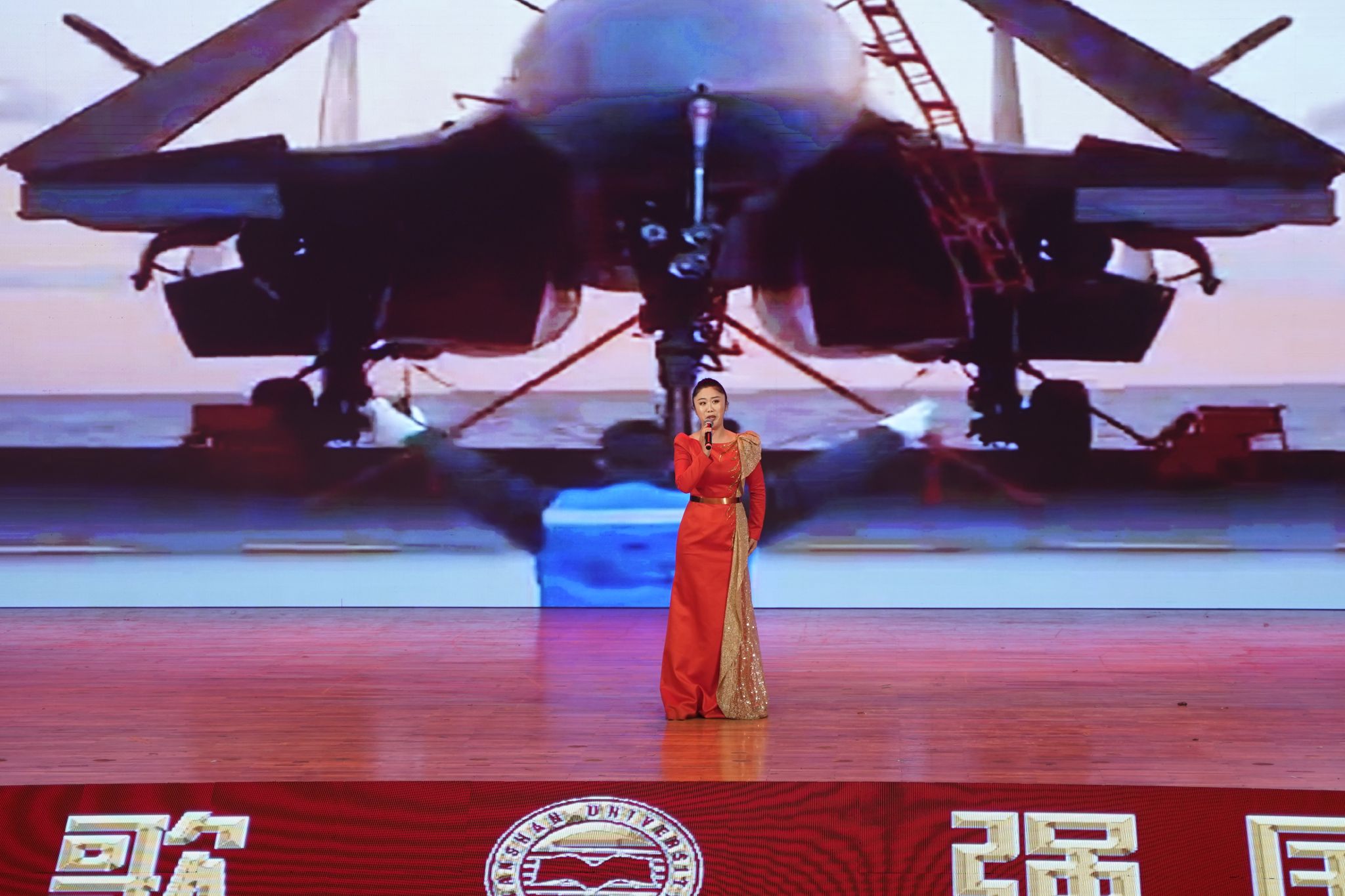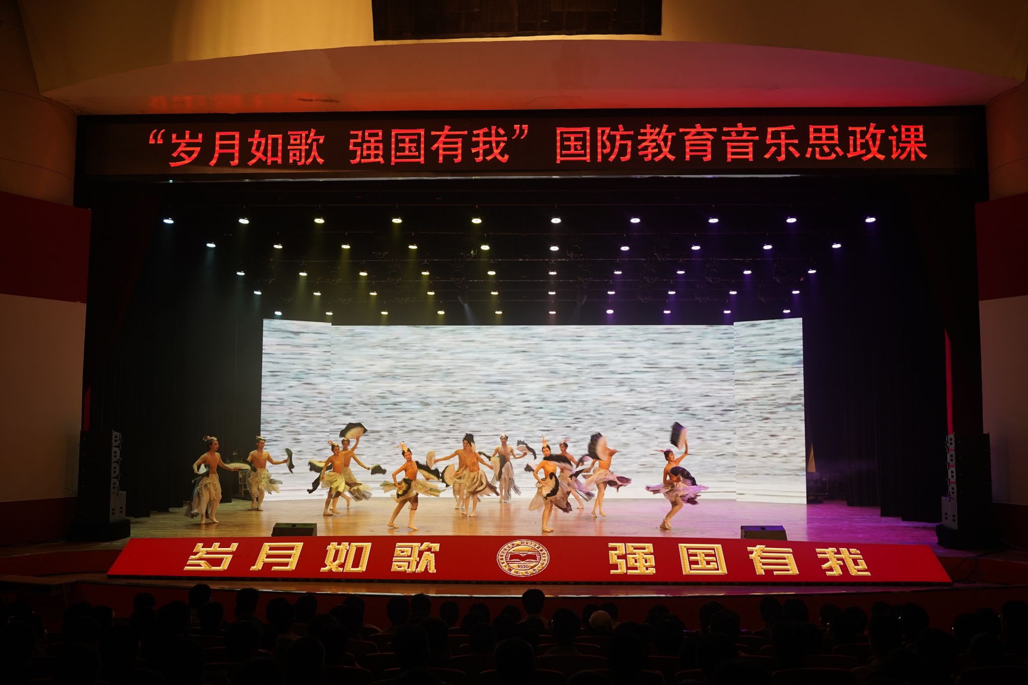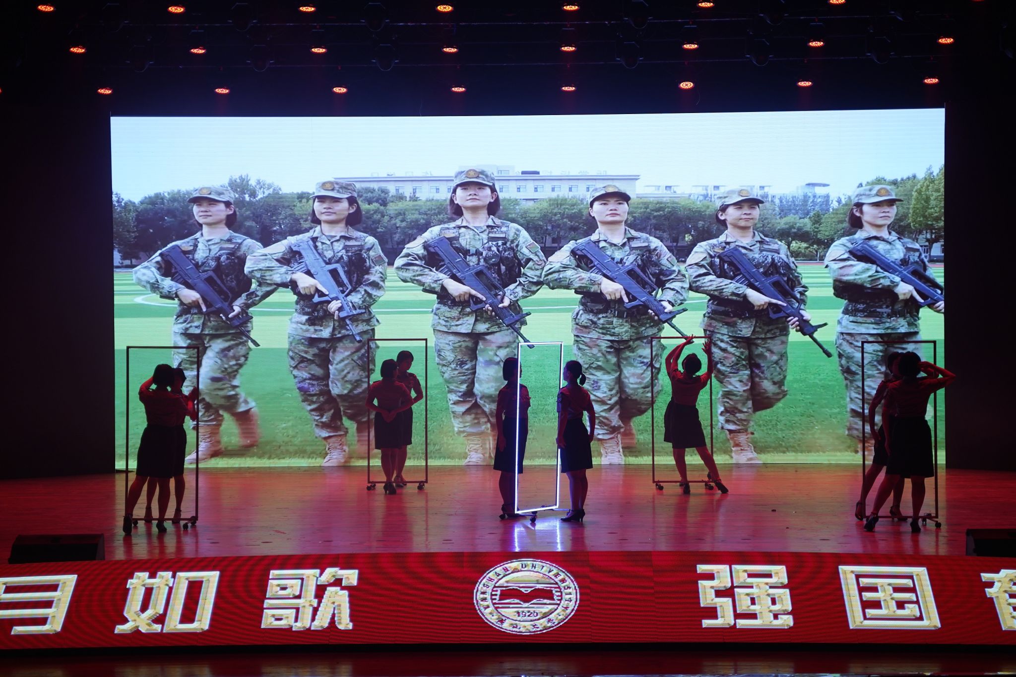 军人是强国使命的担当。第三篇章“守望——星辰大海”中,由艺术与设计学院带来的舞蹈《海羽织春》跳出了和平年代自然美好和谐的一面,彰显了当代大学生的青春和活力;歌曲《如愿》引导同学们要心怀敬畏,感恩先辈,用实际行动告诉他们,这盛世,如您所愿;谢幕歌曲《强国一代有我在》把音乐思政课推向高潮,号召同学们要不负时代,不负韶华,在强国逐梦的伟大征程里,踔厉奋发,勇毅前行,为国家安全和建设发展贡献自己的青春和热血。