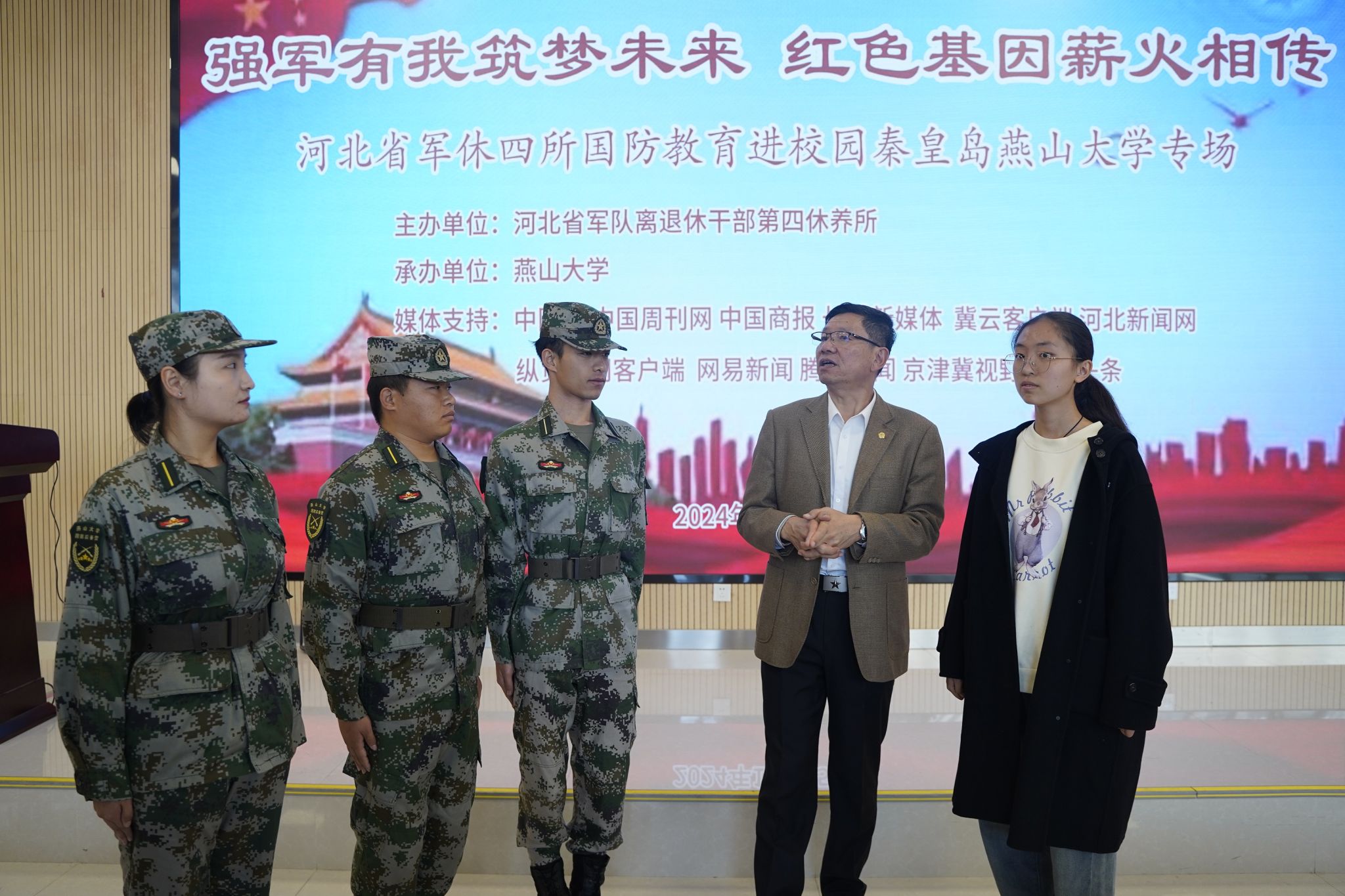 河北省军队离退休干部第四休养所相关负责人随后讲话,她表示,此次活动是该所国防教育进校园系列活动的一部分,通过开展各种主题的国防教育活动,进一步增强大学生的爱国热情,激发报国情怀,为培养新时代的接班人贡献力量。
