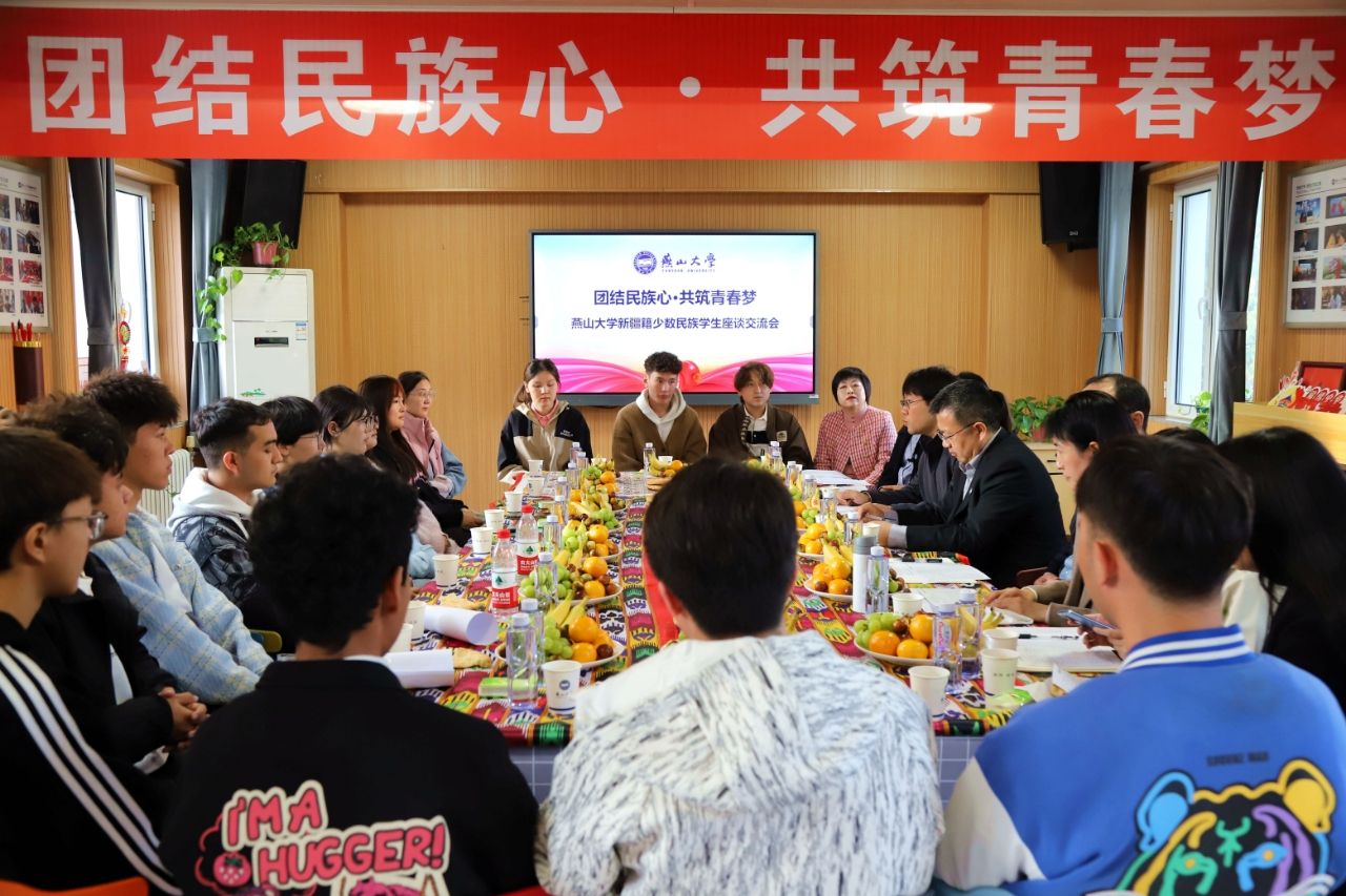 【新闻中心讯】为扎实推进民族团结进步工作,铸牢中华民族共同体意识,增进学校各民族师生交流交往交融,10月24日16:00,燕山大学“团结民族心·共筑青春梦”新疆籍少数民族学生座谈交流会在西校区“寓见世界”一站式学生社区举行。学校党委常委、副校长蔡星周出席,统战部部长韩昱卓、学生工作部部长薛传佳、部分学院教师代表和来自新疆地区的蒙古族、哈萨克族、维吾尔族等15名少数民族学生参加。座谈交流会由少数民族辅导员巴里很·拜提汗主持。