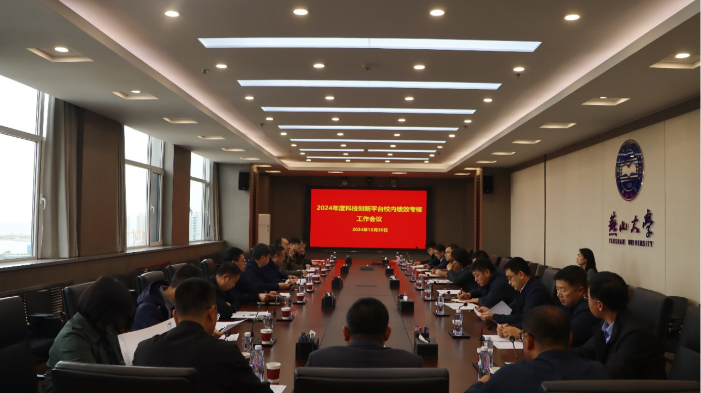 【新闻中心讯】10月30日下午,燕山大学2024年度科技创新平台绩效考核工作会议在世纪楼2103会议室召开,副校长王德松、科学技术研究院院长严书亭、计划财务处处长刘国安、实验室与资产管理处处长王耀峰、研究生院副院长李兴国、人力资源处副处长刘汉峰以及相关科技创新平台负责人参加会议。会议由严书亭主持。