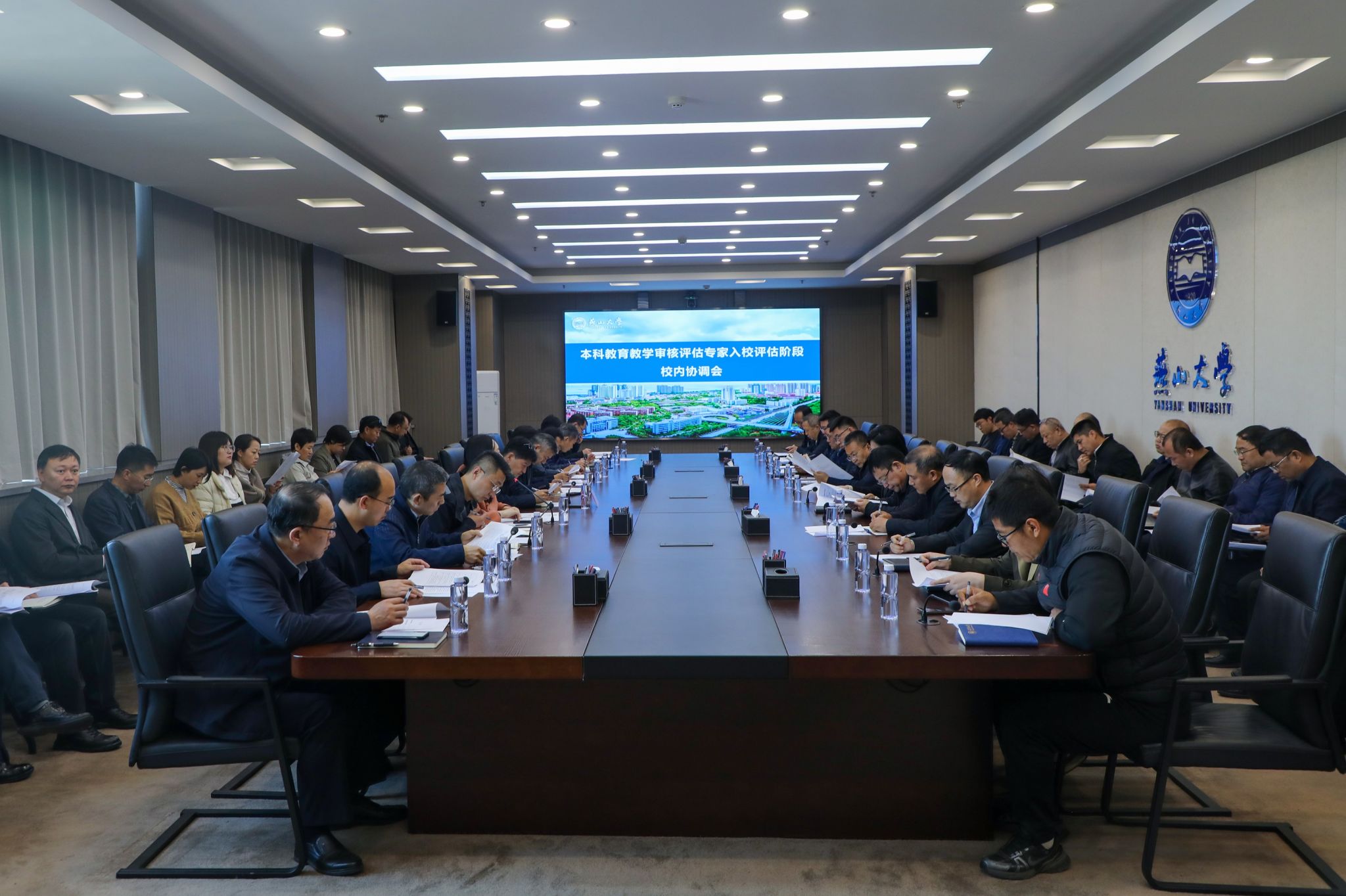 【新闻中心讯】11月1日上午,燕山大学本科教育教学审核评估专家入校评估阶段校内协调会在世纪楼2103会议室召开。党委常委、副校长汪殿龙,各职能部门负责人,各教学单位负责人,审核评估工作办公室工作人员等参加会议。会议由审核评估工作办公室组织,审核评估工作办公室副主任刘永主持。