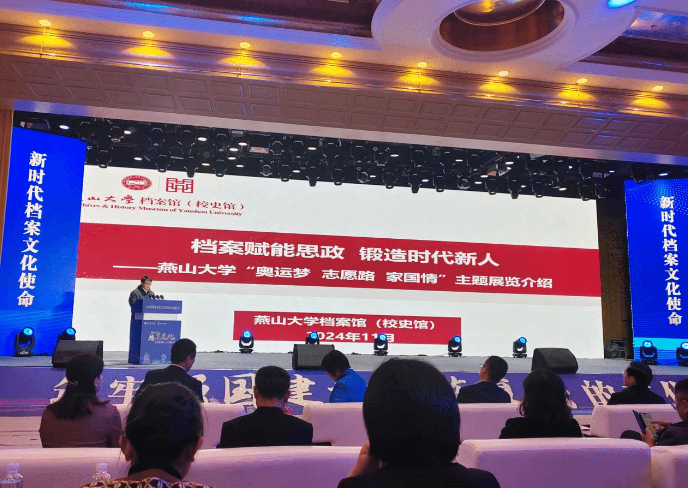 学校档案馆(校史馆)馆长郭沛代表学校领奖,并就如何提升档案文化感召力建设,作了题为《档案赋能思政 锻造时代新人》的现场发言。他介绍了燕山大学档案文化建设概况和“奥运梦 志愿路 家国情”主题展览的举办情况,并分享了燕山大学近年来在推动档案文化创新发展上取得的成绩和体会。通过案例的现场展示和交流,进一步扩大了燕山大学档案工作的美誉度和影响力。